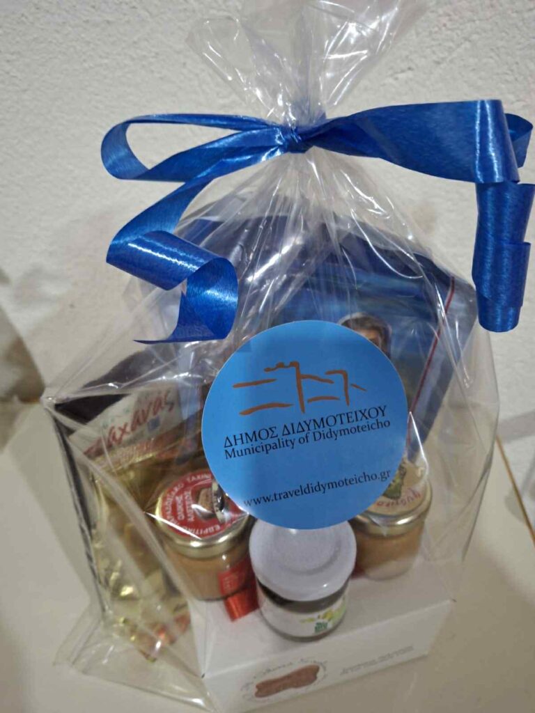 Ο Δήμος Διδυμοτείχου ευχαριστεί θερμά τον Εμπορικό Σύλλογο Διδυμοτείχου για την άμεση ανταπόκριση και την ευγενική προσφορά τοπικών προϊόντων, τα οποία διανεμήθηκαν ως αναμνηστικά δώρα (gift bags) στους συμμετέχοντες της έκθεσης. Συγκεκριμένα, ευχαριστούμε: