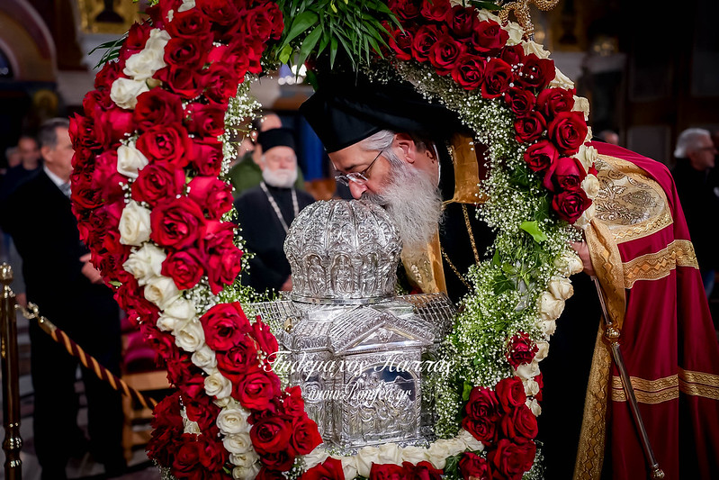 Στον Πανηγυρικό Εσπερινό συγχοροστάτησαν οι Μητροπολίτες Αμβρόσιος (πρώην Καλαβρύτων), Ιερόθεος (Ναυπάκτου και Ζιχνών), Αθανάσιος (Ηλείας), Διονύσιος (Ζακύνθου), Θεόκλητος (Ιερισσού), Χρυσόστομος (Τρίκκης και Μάνης), Ιερώνυμος (Καλαβρύτων), Επιφάνιος (Μαντινείας), Παύλος (Κορίνθου) καθώς και ο Επίσκοπος Κερνίτσης Χρύσανθος.