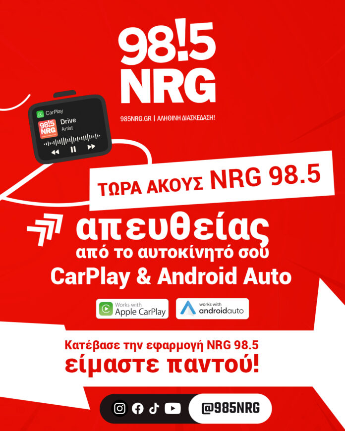 Η εφαρμογή του σταθμού για iOS και Android είναι πλέον συμβατή με Apple CarPlay και Android Auto, προσφέροντας στους ακροατές τη δυνατότητα να ακούνε NRG απευθείας από το αυτοκίνητό τους, με ένα άγγιγμα στην οθόνη.