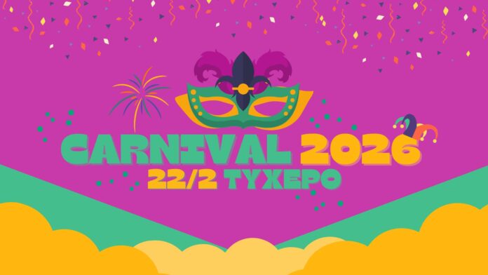 Το Καρναβάλι Τυχερού επιστρέφει για το 2026, προσκαλώντας κατοίκους και επισκέπτες να συμμετάσχουν στη μεγαλύτερη γιορτή της περιοχής. Η εκδήλωση θα πραγματοποιηθεί την Κυριακή 22 Φεβρουαρίου 2026, με ώρα έναρξης στις 12:00 το μεσημέρι, ενώ θα ακολουθήσει συναυλία με τον καλλιτέχνη που θα ανακοινωθεί σύντομα.