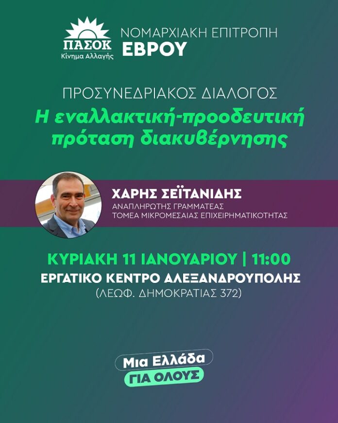 Στην εκδήλωση θα παραβρεθεί ο Αναπληρωτής Γραμματέας του Τομέα Μικρομεσαίας Επιχειρηματικότητας του ΠΑΣΟΚ – ΚΙΝ.ΑΛ. και Περιφερειακός Σύμβουλος της παράταξης «Μαζί για την Αλλαγή», Χάρης Σεϊτανίδης.