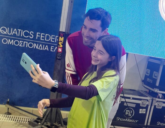 Μετά την απονομή του χρυσού μεταλλίου στα 100 μέτρα ύπτιο, ο κ. Χρήστου, ενώ είχε μόλις παραλάβει το μετάλλιό του από τον Περιφερειάρχη ΑΜ-Θ, πλησίασε τη μικρή Ελένη, μέλος του ΝΟΑ και εθελόντρια στη διοργάνωση, η οποία τον είχε ζητήσει για μια selfie.