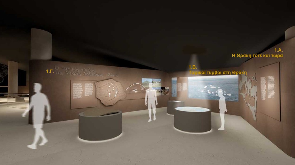 Η εκθεσιακή αφήγηση διαρθρώνεται σε πέντε ενότητες, με πλούσιο εποπτικό και πολυμεσικό υλικό. Η πρώτη ενότητα συνιστά την απαραίτητη εισαγωγή στο χωρόχρονο του μνημείου. Στις ενότητες 2-5 αναπτύσσονται οι θεματικές: «Ποιοι ήταν οι άνθρωποι που τάφηκαν στον Τύμβο της Δοξιπάρας;», «Οι άμαξες στον αρχαίο κόσμο: Οχήματα με πολλές σημασίες», «Πεθαίνοντας στη Θράκη. Ταφικές τελετουργίες των ρωμαϊκών χρόνων», «Η τελευταία νεκρή του Τύμβου ήταν γυναίκα». Η έκθεση θα είναι προσβάσιμη σε εμποδιζόμενα άτομα, αλλά και σε επισκέπτες με δυσχέρειες όρασης.