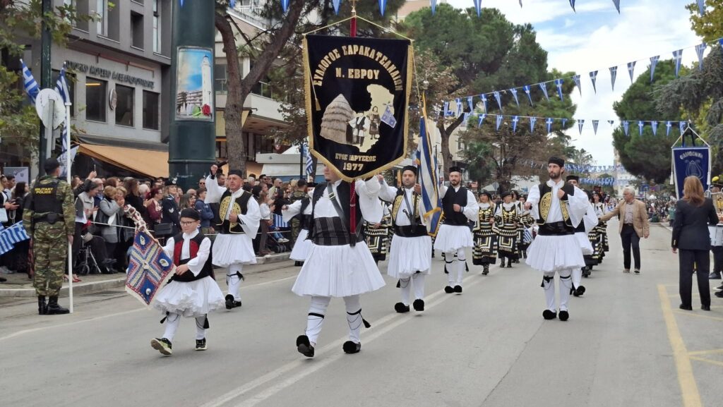 Αμέσως μετά, πολιτιστικοί και παραδοσιακοί σύλλογοι της Αλεξανδρούπολης και του Έβρου παρέλασαν με παραδοσιακές φορεσιές, μεταφέροντας το μήνυμα της ενότητας και της ιστορικής μνήμης μέσα από την παράδοση, τη μουσική και τον χορό.