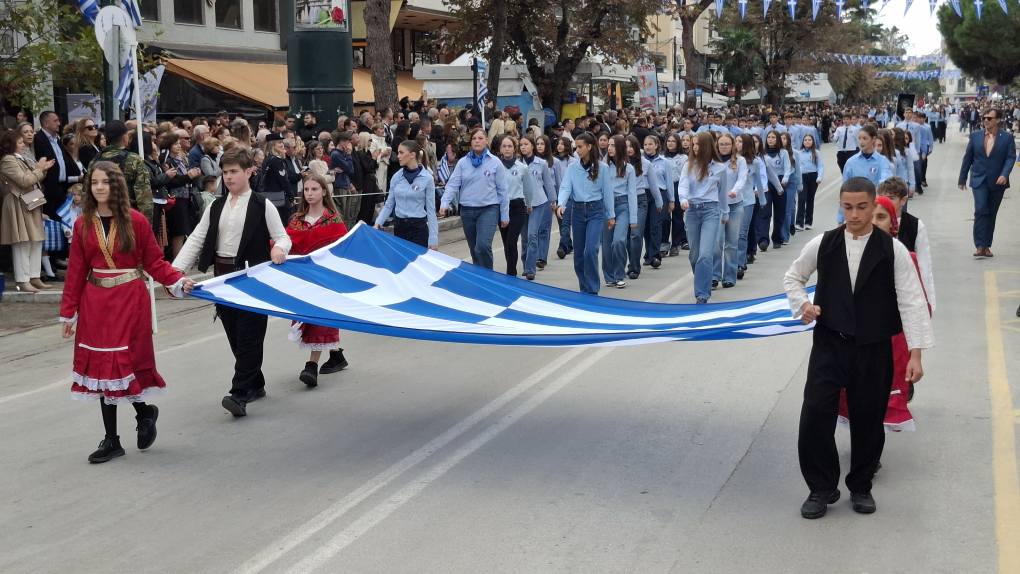 Πλήθος κόσμου κατέκλυσε το κέντρο της πόλης για να χειροκροτήσει τους μαθητές, τα σώματα ασφαλείας και τους συλλόγους που τίμησαν με περηφάνια τους ήρωες του ’40, κρατώντας ζωντανό το φρόνημα και τις αξίες της ελευθερίας και της ενότητας.