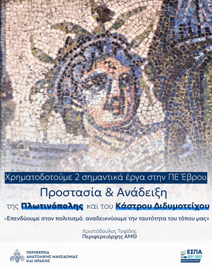 - «Προστασία και ανάδειξη αρχαιολογικού χώρου Πλωτινόπολης, Δ. Διδυμοτείχου», με προϋπολογισμό 2.180.000 ευρώ και δικαιούχους την Διεύθυνση Αναστήλωσης Αρχαίων Μνημείων και την Εφορεία Αρχαιοτήτων Έβρου.