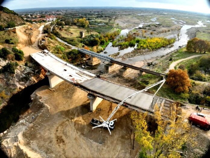 Ολοκληρώθηκε η σκυροδέτηση της τελευταίας πλάκας του καταστρώματος της νέας γέφυρας του Κομψάτου ποταμού στο ύψος του Πολυάνθου του Δήμου Ιάσμου, επιβεβαιώνοντας την καθημερινή πρόοδο που σημειώνεται στο έργο.