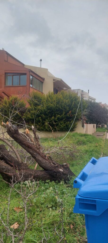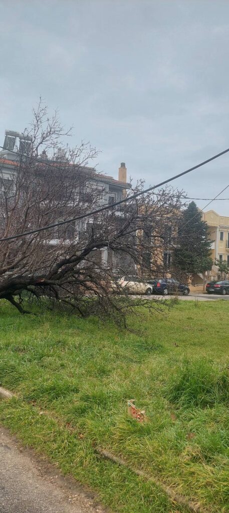 Σύμφωνα με την ενημέρωση, από την πτώση του δέντρου ξηλώθηκε κολώνα της ΔΕΗ, με αποτέλεσμα καλώδιο υπό τάση να καταλήξει στο οδόστρωμα. Για λόγους ασφάλειας, ο δρόμος αποκλείστηκε άμεσα.