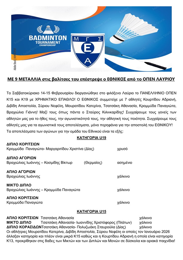Σαρωτικός ο Εθνικός Badminton με 9 μετάλλια στο ΟΠΕΝ Λαυρίου