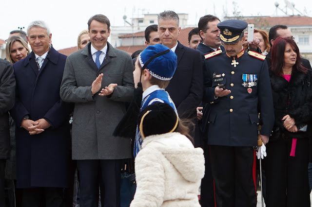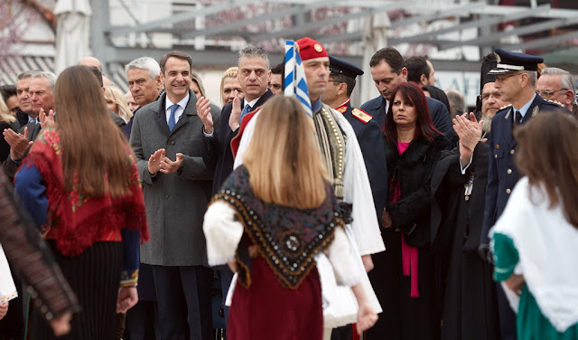 Στη συνέχεια ο κ. Μητσοτάκης μετέβη στην Ορεστιάδα, οπού παρακολούθησε την μαθητική και την στρατιωτική παρέλαση.