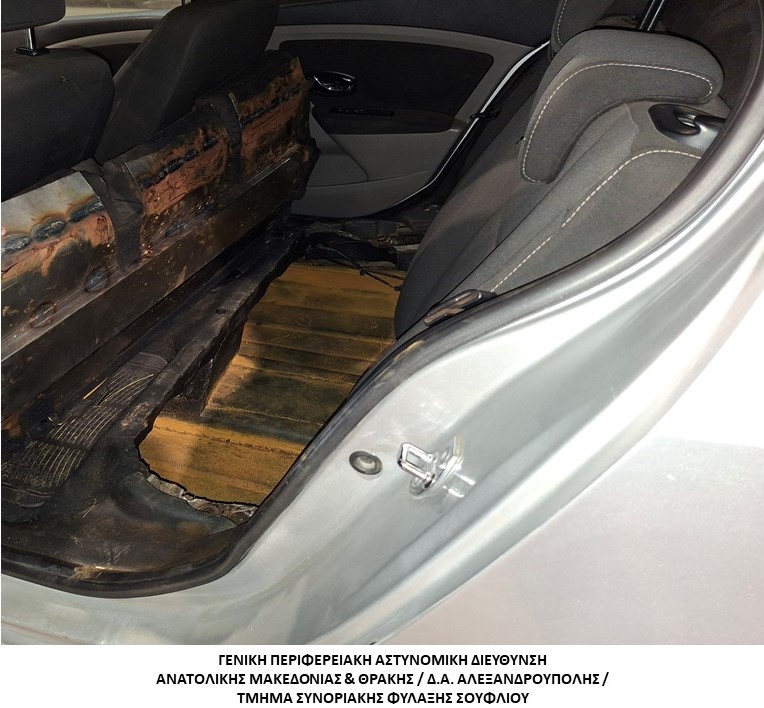 Στη δεύτερη περίπτωση, το βράδυ, ο δεύτερος διακινητής επιχείρησε να εισέλθει στη χώρα μέσω του Συνοριακού Σημείου Διέλευσης Κήπων. Κατά τον έλεγχο που πραγματοποίησαν αστυνομικοί του Τμήματος Διαβατηριακού Ελέγχου Κήπων και του Τμήματος Συνοριακής Φύλαξης Σουφλίου, με τη συνδρομή τελωνειακών υπαλλήλων, διαπιστώθηκε ότι δύο μη νόμιμοι μετανάστες ήταν επιμελώς κρυμμένοι σε ειδικά διαμορφωμένη κρύπτη του οχήματος.