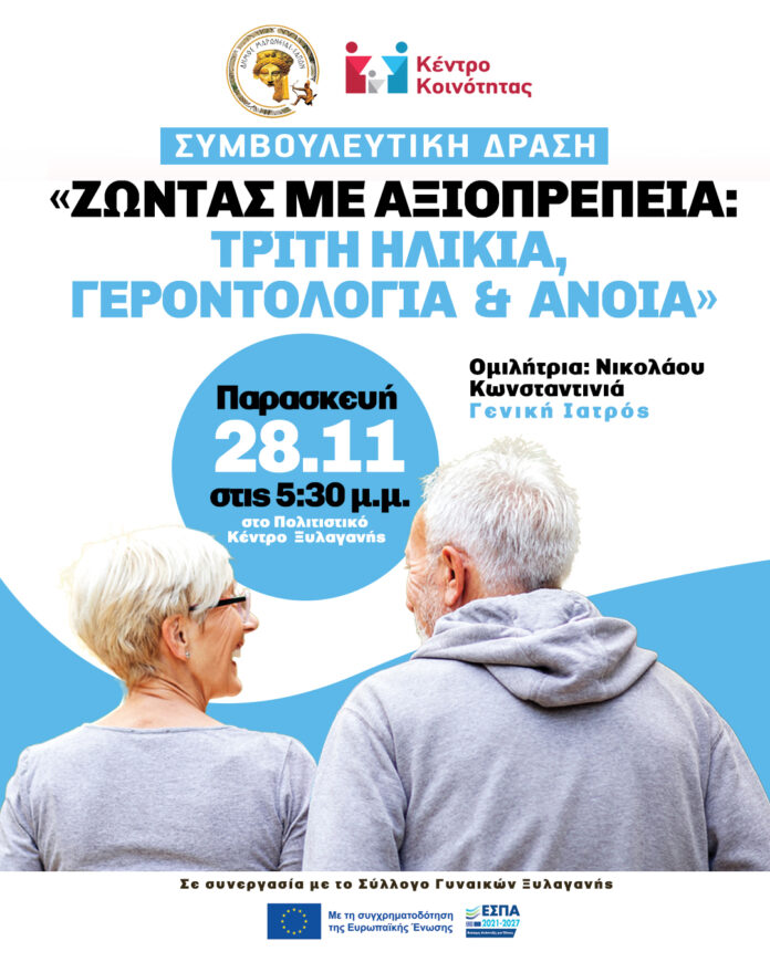 Ο Δήμος Μαρωνείας-Σαπών, σε συνεργασία με το Κέντρο Κοινότητας με Παράρτημα Ρομά και τον Σύλλογο Γυναικών Ξυλαγανής, διοργανώνει την Παρασκευή 28 Νοεμβρίου 2025, στις 17:30, στο Πολιτιστικό Κέντρο Ξυλαγανής, συμβουλευτική δράση με τίτλο: «Ζώντας με Αξιοπρέπεια: Τρίτη Ηλικία, Γεροντολογία & Άνοια».