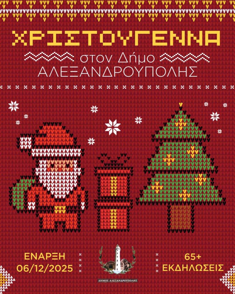 Ο Δήμος Αλεξανδρούπολης φοράει τα γιορτινά του και υποδέχεται τα Χριστούγεννα με μια σειρά ξεχωριστών εκδηλώσεων που θα γεμίσουν με λάμψη, χαρά και μουσική κάθε γωνιά της περιοχής!