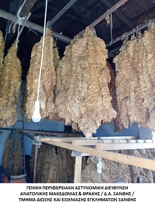 - τριάντα επτά σακούλες με φύλλα καπνού, συνολικού βάρους 408 κιλών και 745 γραμμαρίων,