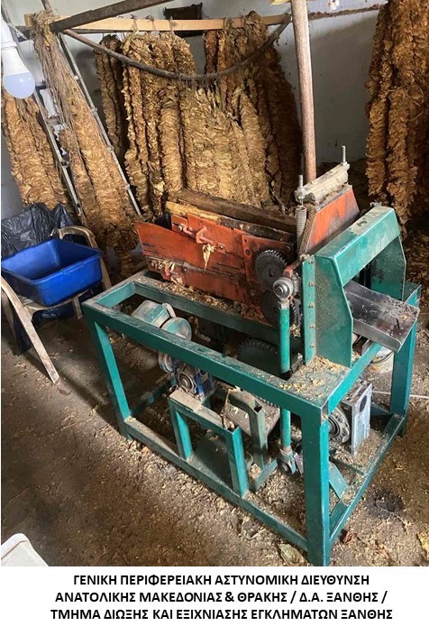 Επιπλέον, κατασχέθηκαν μία ηλεκτρονική ζυγαριά ακριβείας, ένα μηχάνημα ανάδευσης και ένα μηχάνημα κοπής.