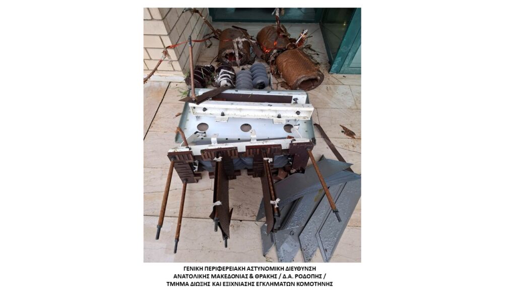 Κατασχέθηκαν ποσότητα χαλκού βάρους 170 κιλών, περιβλήματα μετασχηματιστών, διαρρηκτικά εργαλεία, χρηματικό ποσό και το όχημα των δραστών, τα οποία αποδόθηκαν αρμοδίως. Το προανακριτικό έργο συνεχίζεται από το Τμήμα Δίωξης και Εξιχνίασης Εγκλημάτων Κομοτηνής.