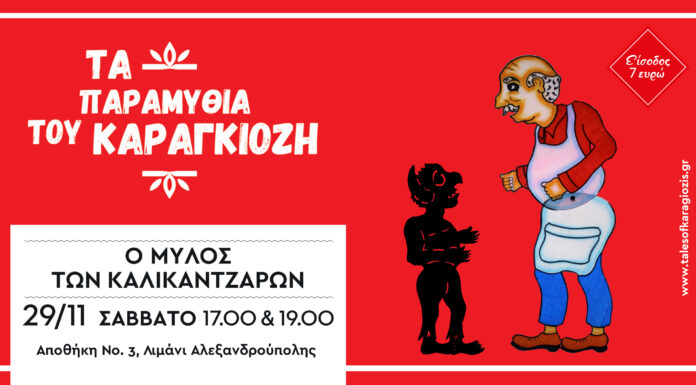 «Ο Μύλος των Καλικάντζαρων» στην Αλεξανδρούπολη – Εορταστική παράσταση Καραγκιόζη το Σάββατο 29 Νοεμβρίου