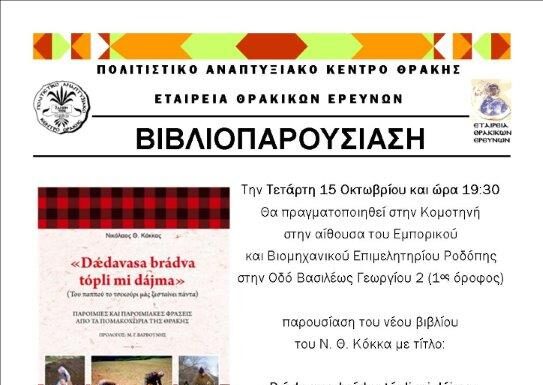 Κομοτηνή: Παρουσίαση του νέου βιβλίου του Ν. Θ. Κόκκα: “Του παππού το τσεκούρι μάς ζεσταίνει πάντα”