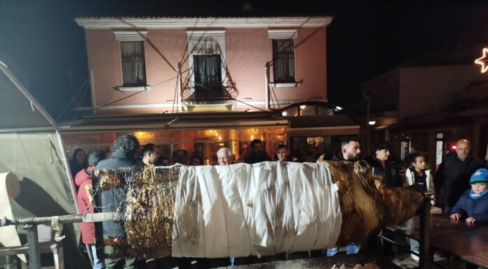 Φέρες: Πιστοί στο έθιμο οι Φεριώτες έστησαν τη μεγαλύτερη σούβλα της χρονιάς στην άνω πλατεία