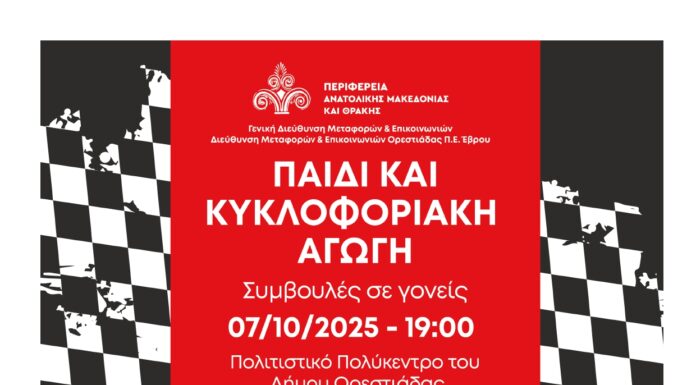 Εκδήλωση στην Ορεστιάδα «Παιδί και κυκλοφοριακή αγωγή – συμβουλές σε γονείς», με κεντρικό ομιλητή τον Κώστα Στεφανή