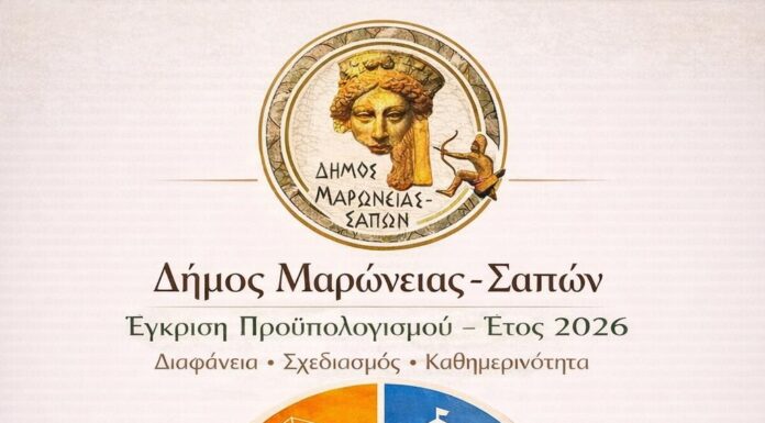 Εγκρίθηκε ο προϋπολογισμός 2026 του Δήμου Μαρωνείας – Σαπών