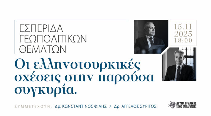 Εσπερίδα στην Ξάνθη: «Οι Ελληνοτουρκικές Σχέσεις στην παρούσα συγκυρία» – 15 Νοεμβρίου 2025
