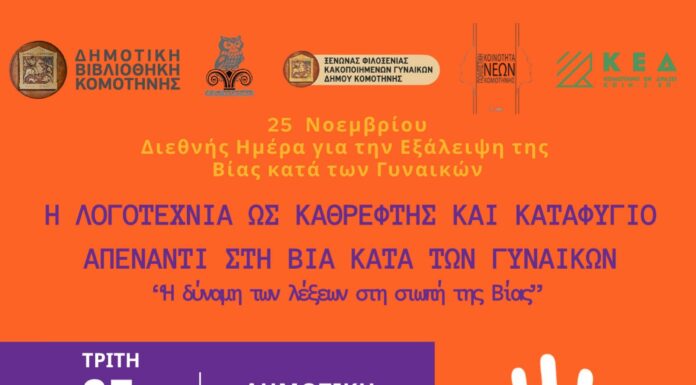 Δημοτική Βιβλιοθήκη Κομοτηνής: «Η Λογοτεχνία ως Καθρέφτης και Καταφύγιο» στην Παγκόσμια Ημέρα για την Εξάλειψη της Βίας κατά των Γυναικών