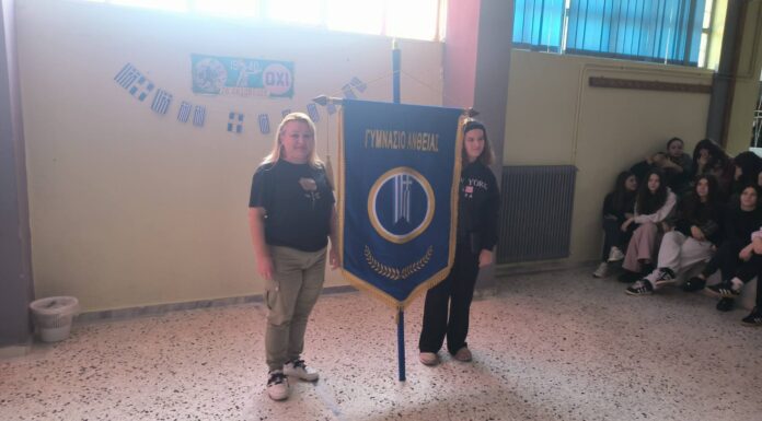 Παράδοση λάβαρου στο Γυμνάσιο Άνθειας από τον Σύλλογο Γονέων και Κηδεμόνων