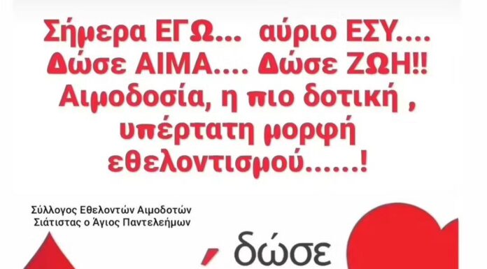Σύλλογος Εθελοντών Αιμοδοτών Φερών: Πρώτη αιμοδοσία για το 2026