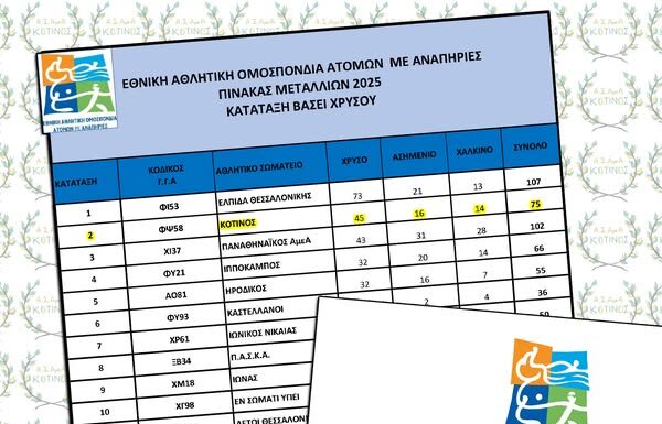ΚΟΤΙΝΟΣ Α.Σ. ΑμεΑ: 45 χρυσά μετάλλια το 2025 και κορυφαία θέση μεταξύ 53 συλλόγων