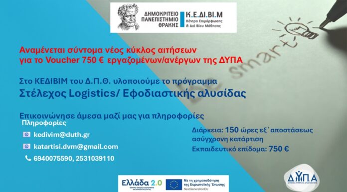 Voucher 750€ ΔΥΠΑ: Νέος κύκλος για το πρόγραμμα Στέλεχος Logistics στο ΔΠΘ
