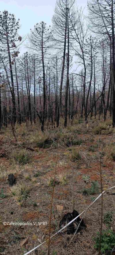 Στο πρώτο στάδιο, που ολοκληρώθηκε πρόσφατα το 2025, πραγματοποιήθηκαν δειγματοληψίες σε 180 επιλεγμένες θέσεις εντός του Εθνικού Πάρκου Δαδιάς – Λευκίμης – Σουφλίου, σε δάσος Τραχείας πεύκης. Οι θέσεις κατανεμήθηκαν κατά το δυνατόν ισομερώς ανάμεσα σε τρεις κατηγορίες δριμύτητας καύσης (χαμηλή, μέση, υψηλή) και διαφορετικά καθεστώτα μεταπυρικής διαχείρισης (αδιατάρακτες, περιοχές υλοτομίας και περιοχές όπου υλοποιήθηκαν αντιδιαβρωτικά έργα).
