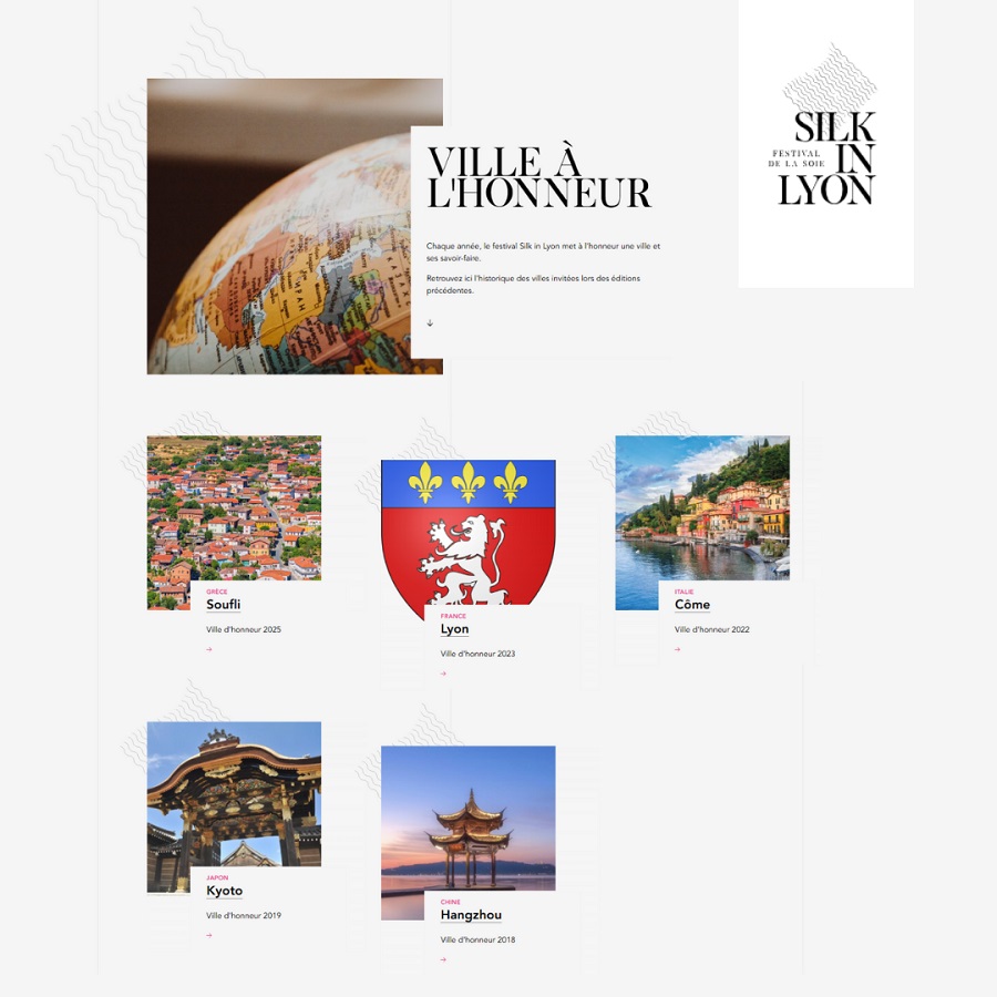Η Silk in Lyon, που από το 2018 συγκεντρώνει χιλιάδες επισκέπτες από όλο τον κόσμο, αναδεικνύει κάθε φορά τον πλούτο και τη σύγχρονη δυναμική της τέχνης της μεταξουργίας μιας ξεχωριστής πόλης του κόσμου που συνδέεται με το μετάξι. Μετά την Hangzhou της Κίνας το 2018, το Kyoto της Ιαπωνίας το 2019, το Como της Ιταλίας το 2022 και τη Λυών της Γαλλίας το 2023, φέτος, ανάμεσα στις υπέροχες πόλεις του κόσμου, πρωταγωνιστεί η πόλη του Σουφλίου!