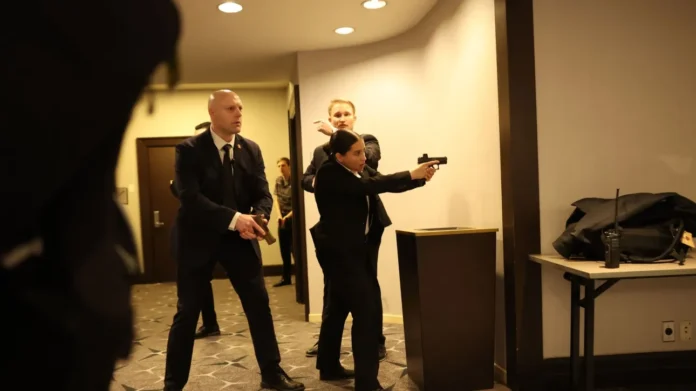 Σκηνικό τρόμου και χάους επικράτησε το δείπνο των ανταποκριτών του Λευκού Οίκου όπου ήταν παρόντες το προεδρικό ζεύγος και πολλοί υπουργοί από πυροβολισμούς που προκάλεσαν την άμεση αντίδραση των μυστικών υπηρεσιών οι οποίες απομάκρυναν τον Ντόνλαντ Τραμπ και τους άλλους παριστάμενους.