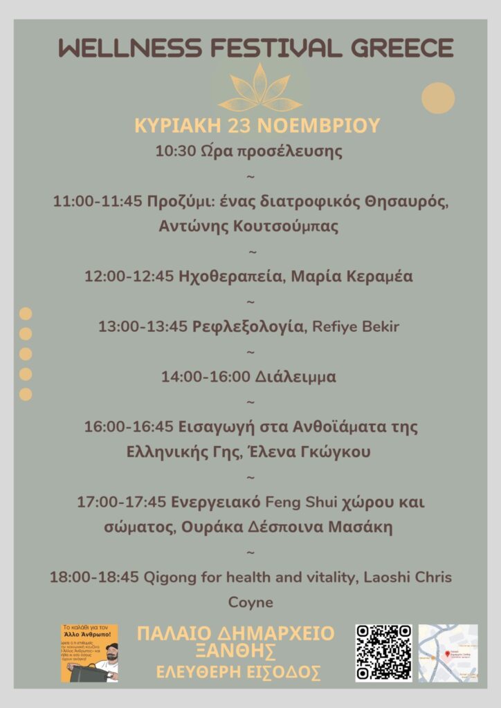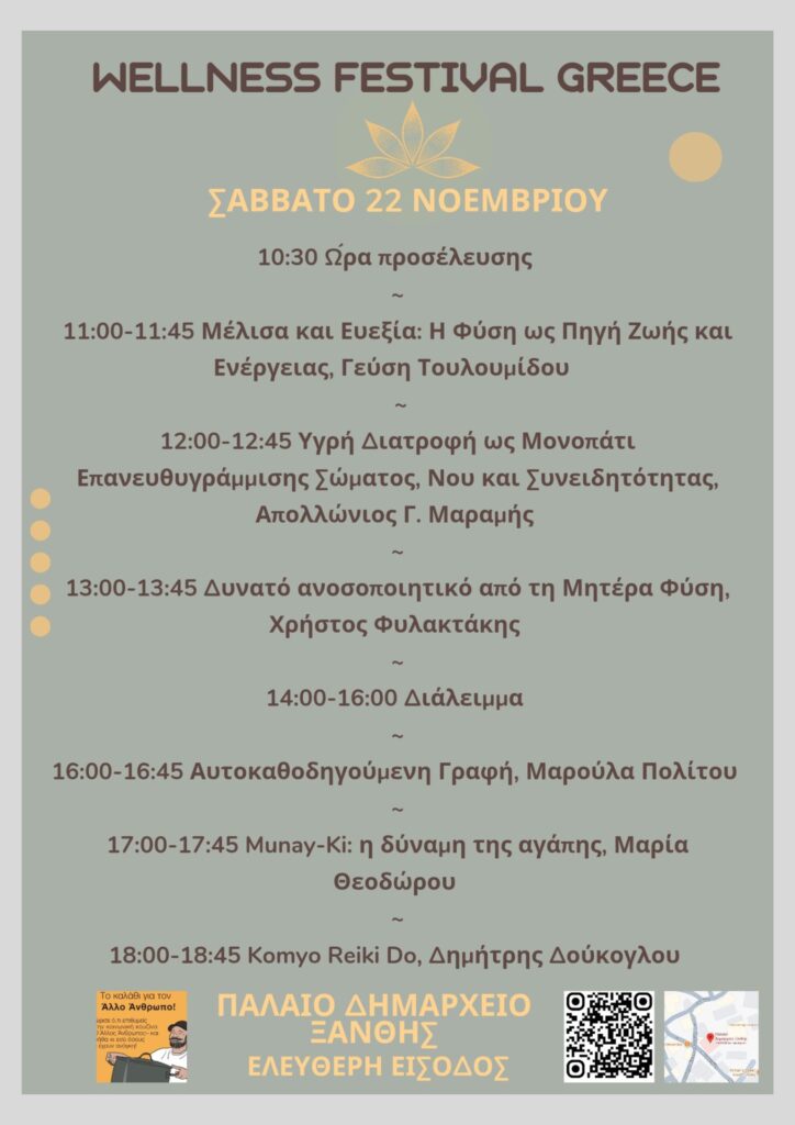 Η Ξάνθη ετοιμάζεται να φιλοξενήσει το “Wellness Festival Greece”, ένα φεστιβάλ αφιερωμένο στην ευεξία, τη χαλάρωση και την ψυχική τόνωση, το Σάββατο 22 και την Κυριακή 23 Νοεμβρίου 2025, στο Παλιό Δημαρχείο της πόλης.